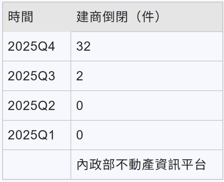 ▲2025年全台房地產交易糾紛中,「建商倒閉」案件在第四季出現異常暴增,